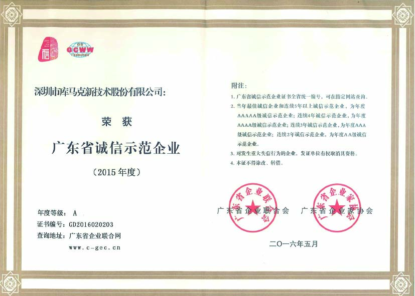 2016年5月11日,由廣東省企業(yè)聯(lián)合會(huì)、廣東省企業(yè)家協(xié)會(huì)和新華網(wǎng)共同主辦的第22屆廣東省企業(yè)家活動(dòng)日在廣州白云國(guó)際會(huì)議中心舉行。庫(kù)馬克作為電力電子傳動(dòng)與自動(dòng)化行業(yè)誠(chéng)信經(jīng)營(yíng)的國(guó)家高新技術(shù)企業(yè),榮獲“2015年度廣東省誠(chéng)信示范企業(yè)”稱號(hào)。