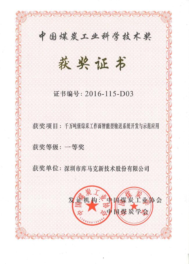 在日前召開的中國煤炭工業(yè)協(xié)會(huì)和中國煤炭學(xué)會(huì)組織的表彰會(huì)上,深圳市庫馬克公司研制的我國首套具有自主知識(shí)產(chǎn)權(quán)的千萬噸級(jí)綜采工作面智能型3.3KV礦用隔爆兼本質(zhì)安全型高壓變頻器榮獲中國煤炭工業(yè)科學(xué)技術(shù)一等獎(jiǎng)。