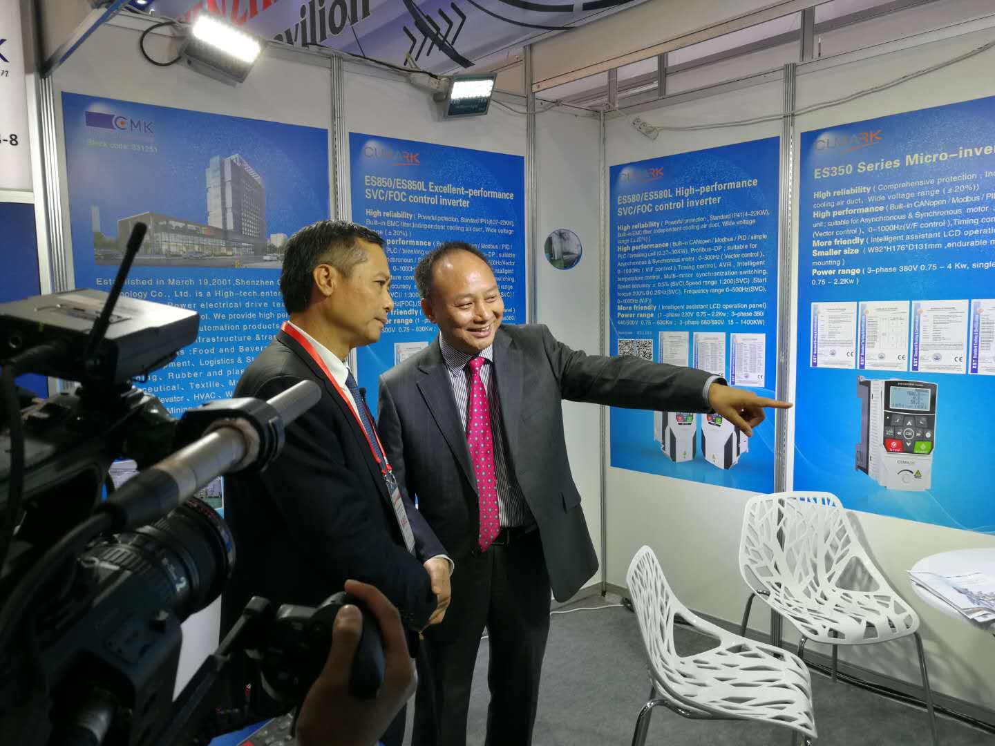展會(huì)現(xiàn)場(chǎng),深圳市寶安區(qū)區(qū)委書(shū)記姚任來(lái)到深圳市庫(kù)馬克新技術(shù)股份有限公司展臺(tái)認(rèn)真觀看,庫(kù)馬克董事長(zhǎng)李瑞常詳細(xì)介紹道。“此次庫(kù)馬克帶來(lái)的是ES系列中低壓變頻永磁同步電機(jī)電液伺服系統(tǒng)解決方案,核心是由庫(kù)馬克研發(fā)中心開(kāi)發(fā)新一代高性能磁場(chǎng)定向矢量控制高中低壓變頻器和防爆高壓變頻器,其特點(diǎn)負(fù)載電流小,響應(yīng)速度快,穩(wěn)速精度高;展現(xiàn)出了工業(yè)4.0與物流4.0的結(jié)合,