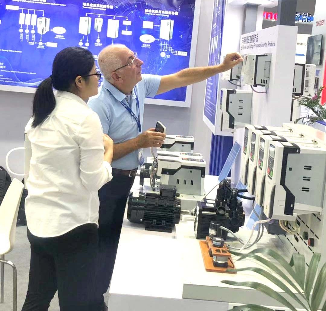 第21屆工博會上庫馬克展示了ES系列低壓智能變頻在主軸下,支持三相異步、永磁同步電機的驅動控制、高速驅動、高效節(jié)能等多種滿足智能生產需求的專業(yè)解決方案。