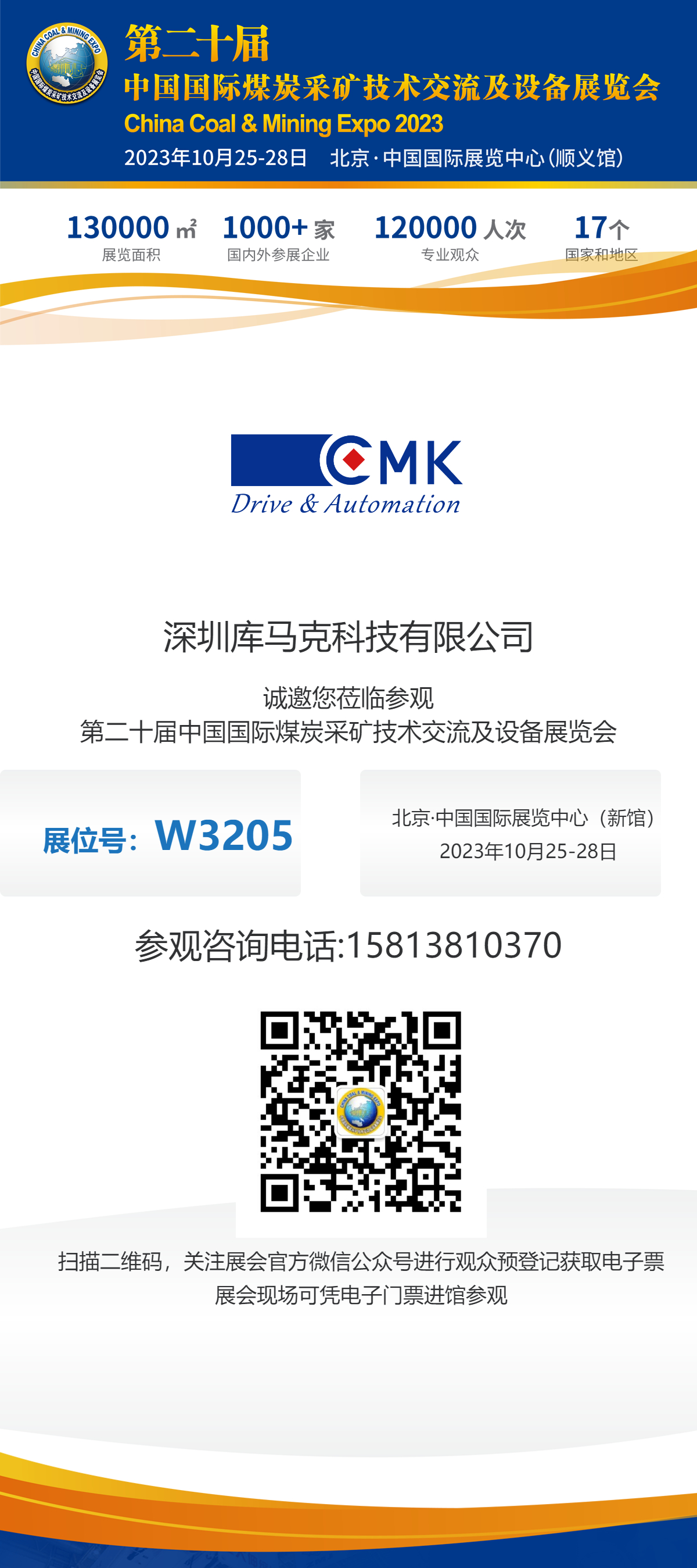 由中國煤炭工業(yè)協(xié)會主辦,中國中煤能源集團有限公司協(xié)辦,中國煤炭工業(yè)國際技術咨詢有限責任公司、匯顯展覽有限公司承辦的第二十屆中國國際煤炭采礦技術交流及設備展覽會(China Coal & Mining Expo 2023)將于2023年10月25-28日在北京?中國國際展覽中心舉辦。